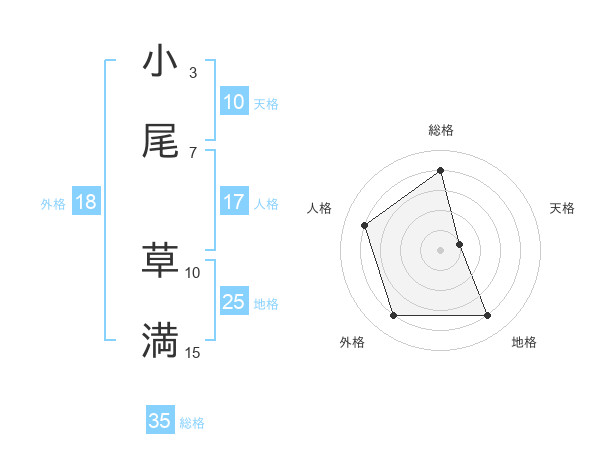 小尾 草満さんの総格は35画の4点!