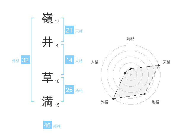嶺井 草満さんの天格は21画の5点!
