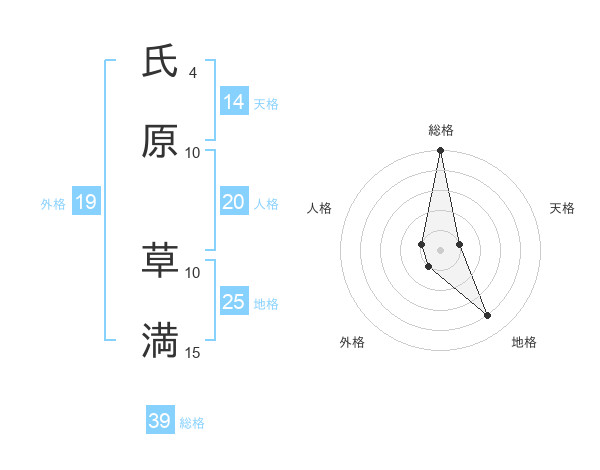 氏原 草満さんの総格は39画の5点!