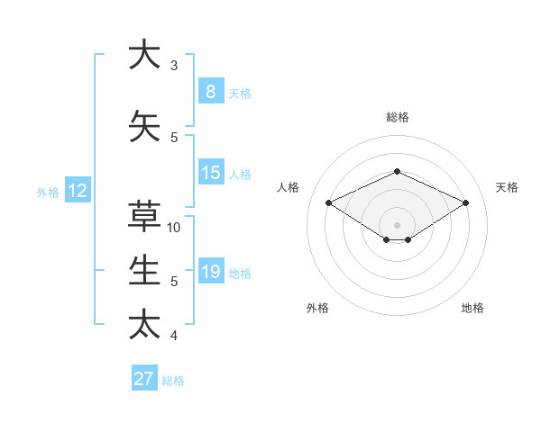 大矢 草生太さんを姓名の画数から五運を鑑定