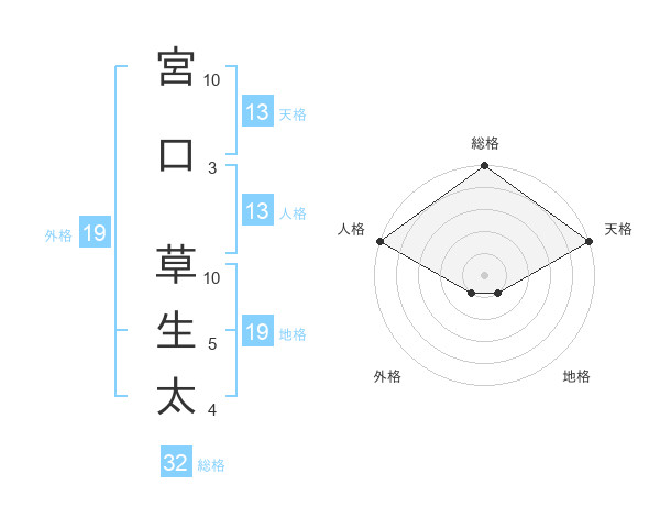 宮口 草生太さんの天格は13画の5点!