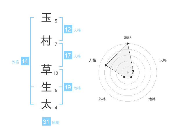 玉村 草生太さんの総格は31画の5点!