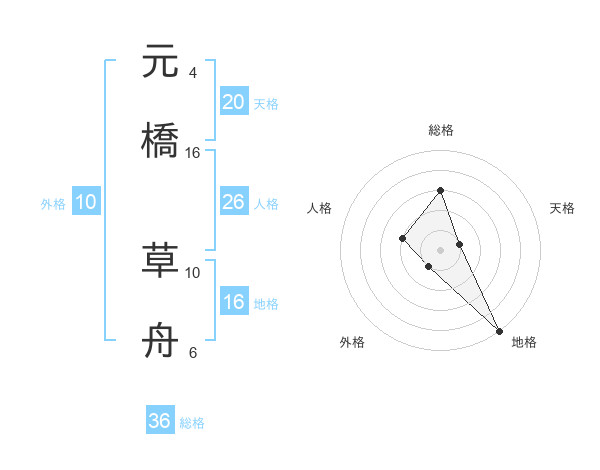 元橋 草舟さんを姓名の画数から五運を鑑定