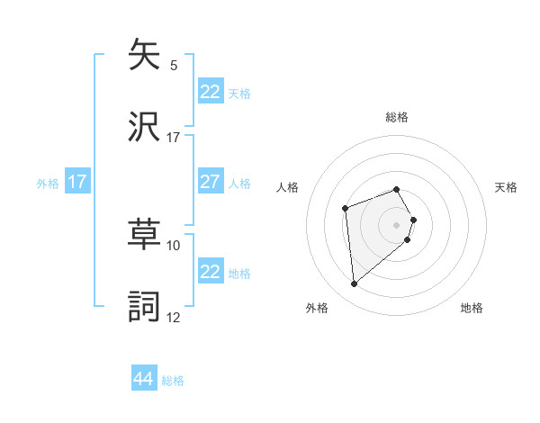矢沢 草詞さんの外格は17画の4点!