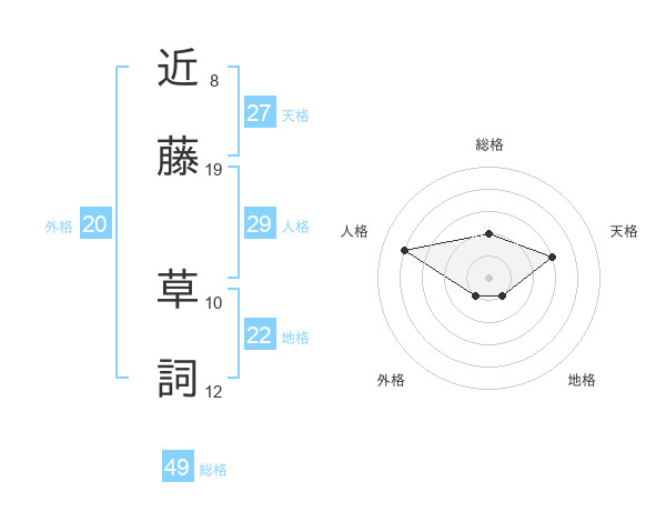 近藤 草詞さんの総格は49画の2点!