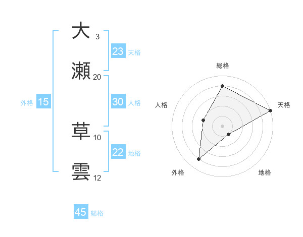 大瀬 草雲さんを姓名の画数から五運を鑑定