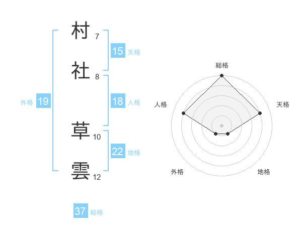 村社 草雲さんの総格は37画の5点!
