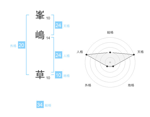 峯嶋 草さんの総格は34画の2点!