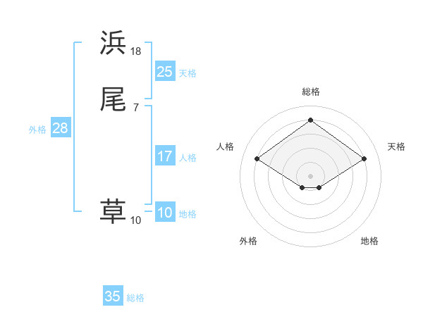 浜尾 草さんの天格は25画の4点!