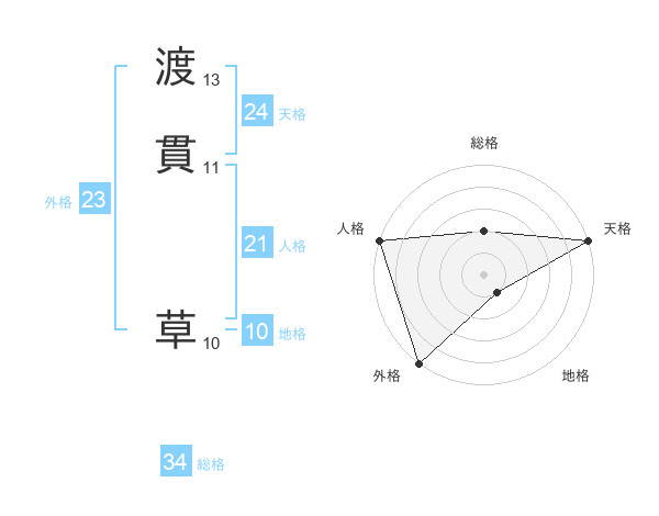 渡貫 草さんの天格は24画の5点!