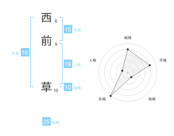 西前 草さんの総格は25画の4点!