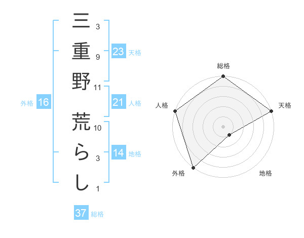 三重野 荒らしさんを姓名の画数から五運を鑑定