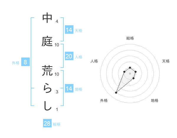 中庭 荒らしさんを姓名の画数から五運を鑑定