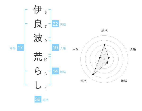 伊良波 荒らしさんを姓名の画数から五運を鑑定