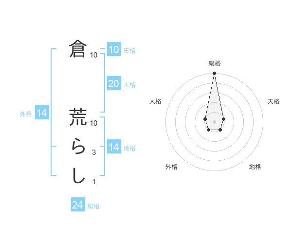 倉 荒らしさんの総格は24画の5点!