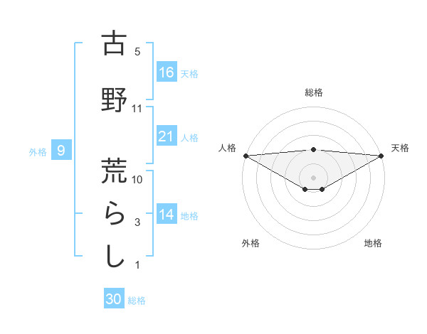 古野 荒らしさんを姓名の画数から五運を鑑定
