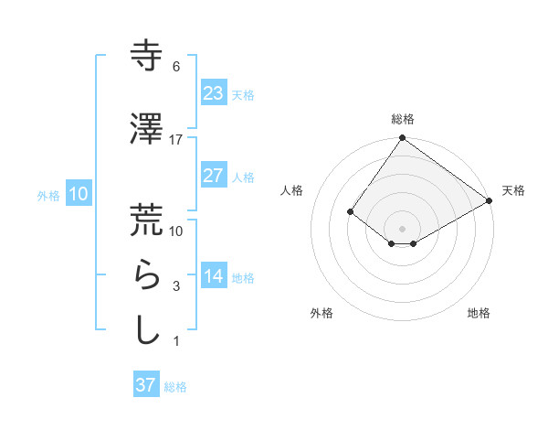 寺澤 荒らしさんを姓名の画数から五運を鑑定