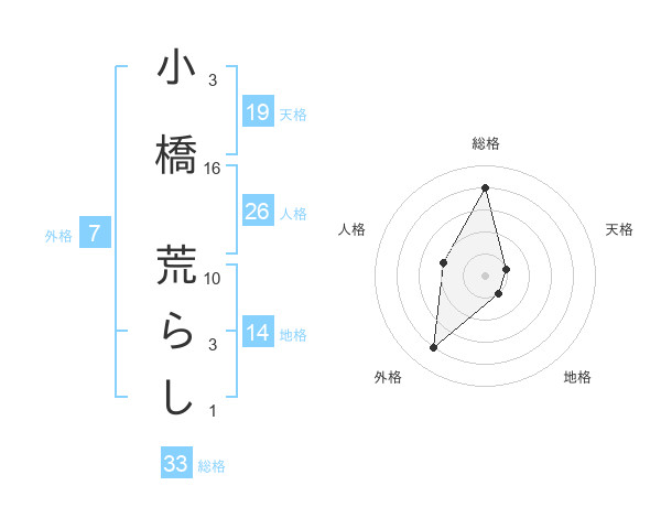 小橋 荒らしさんを姓名の画数から五運を鑑定