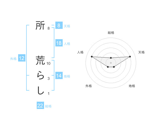 所 荒らしさんの総格は22画の1点!