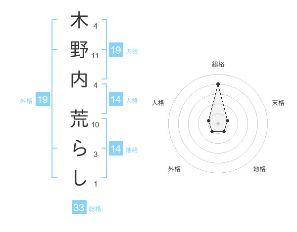木野内 荒らしさんを姓名の画数から五運を鑑定