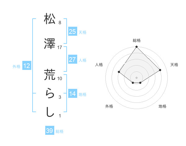松澤 荒らしさんの総格は39画の5点!