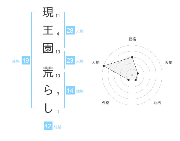 現王園 荒らしさんを姓名の画数から五運を鑑定