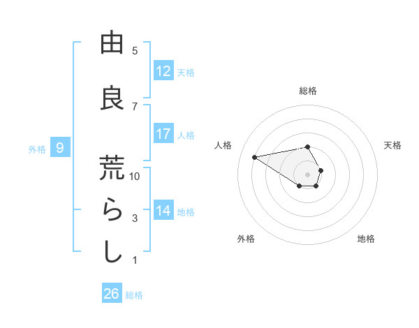 由良 荒らしさんの総格は26画の2点