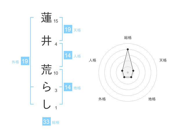 蓮井 荒らしさんの総格は33画の4点!