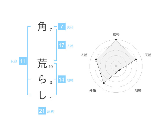 角 荒らしさんの総格は21画の5点!