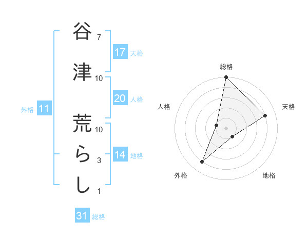 谷津 荒らしさんの総格は31画の5点!