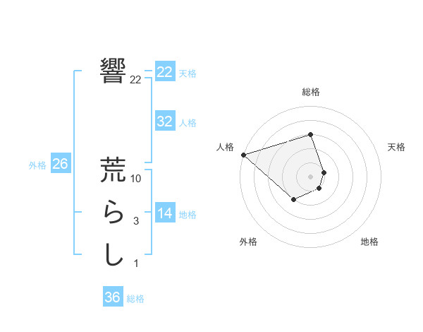 響 荒らしさんの地格は14画の1点!