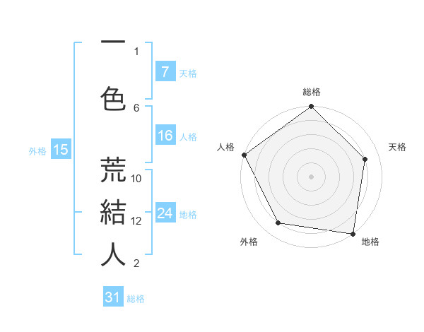 一色 荒結人さんを姓名の画数から五運を鑑定