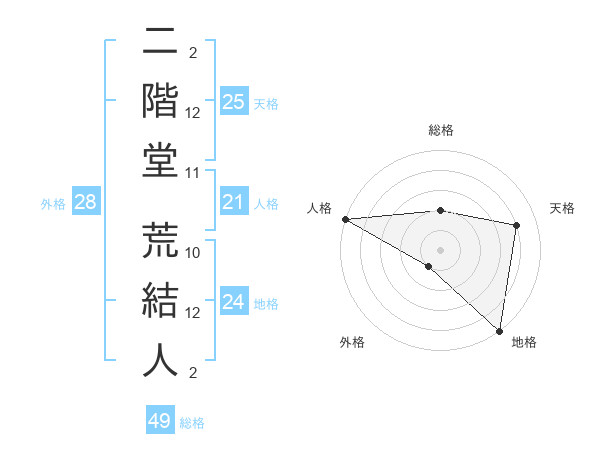 二階堂 荒結人さんの天格は25画の4点!