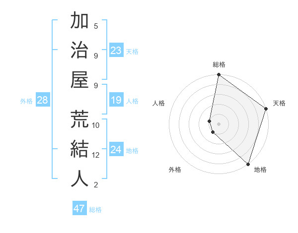 加治屋 荒結人さんを姓名の画数から五運を鑑定