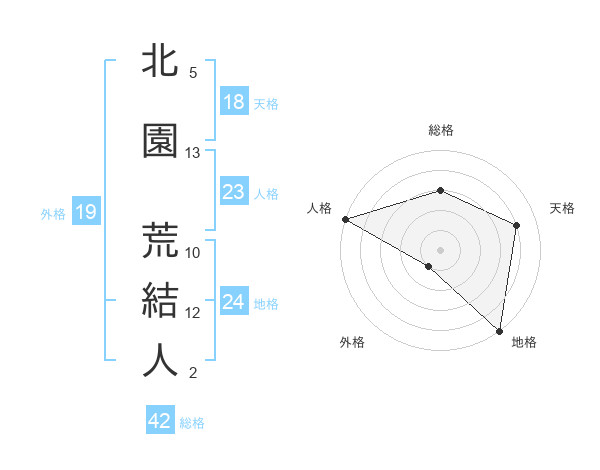 北園 荒結人さんを姓名の画数から五運を鑑定