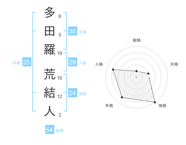 多田羅 荒結人さんを姓名の画数から五運を鑑定