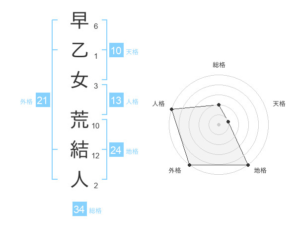 早乙女 荒結人さんを姓名の画数から五運を鑑定