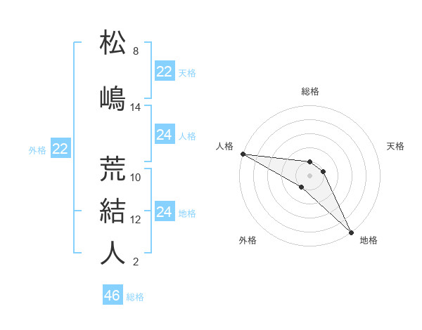 松嶋 荒結人さんを姓名の画数から五運を鑑定