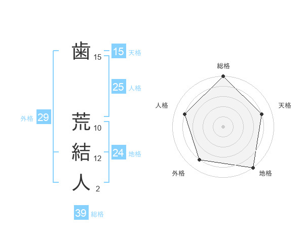 歯 荒結人さんの総格は39画の5点!