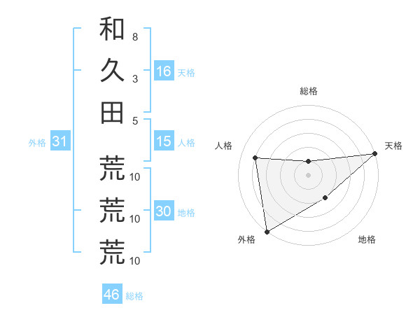 和久田 荒荒荒さんを姓名の画数から五運を鑑定