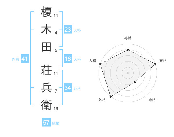 榎木田 荘兵衛さんの総格は57画の4点!
