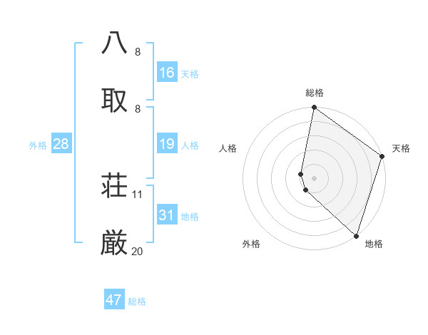 八取 荘厳さんを姓名の画数から五運を鑑定