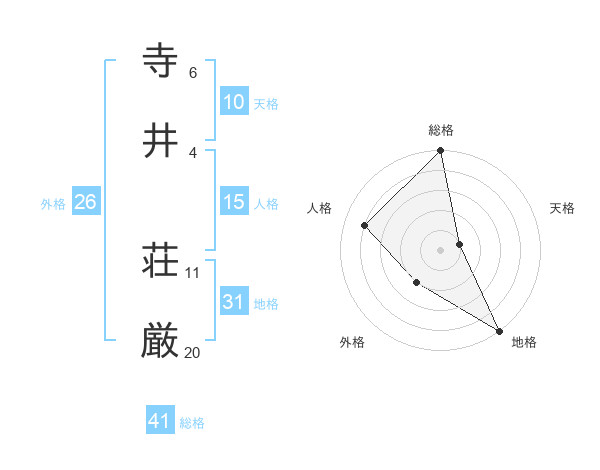寺井 荘厳さんを姓名の画数から五運を鑑定