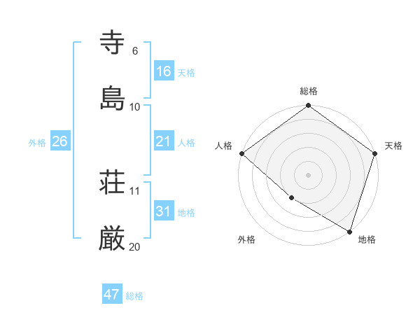寺島 荘厳さんを姓名の画数から五運を鑑定
