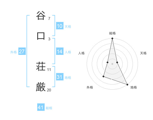 谷口 荘厳さんを姓名の画数から五運を鑑定
