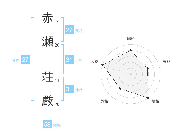 赤瀬 荘厳さんを姓名の画数から五運を鑑定