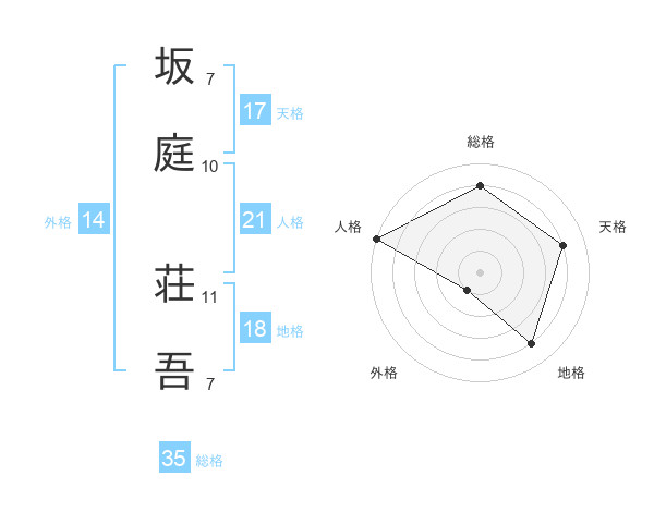坂庭 荘吾さんの総格は35画の4点!