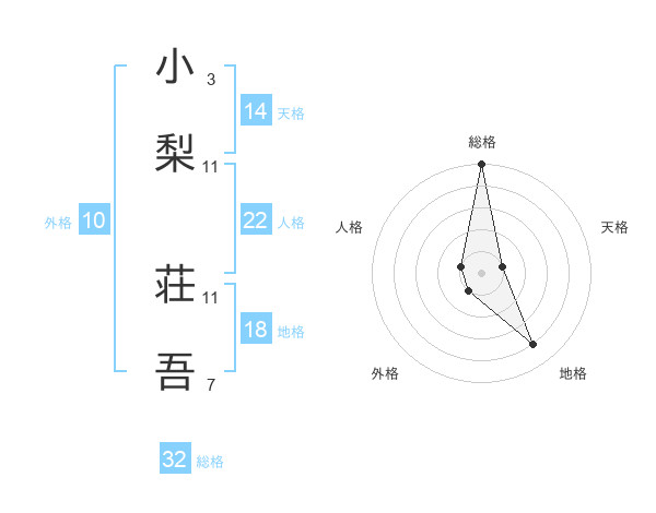 小梨 荘吾さんの総格は32画の5点!