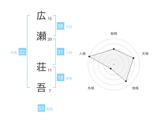 広瀬 荘吾さんの総格は53画の3点!