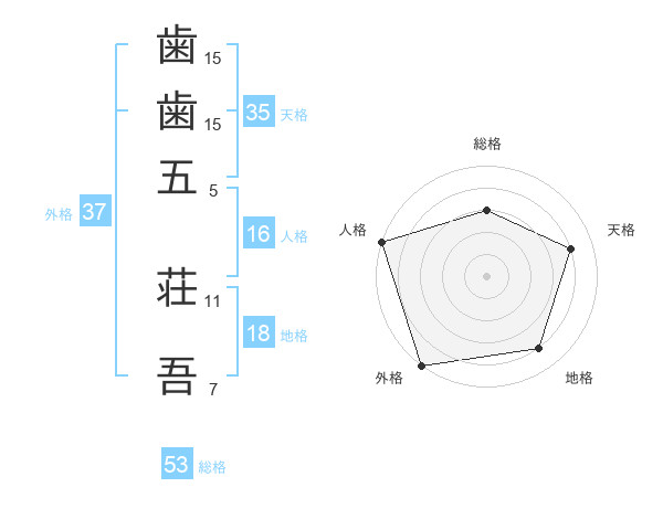 歯歯五 荘吾さんの外格は37画の5点!